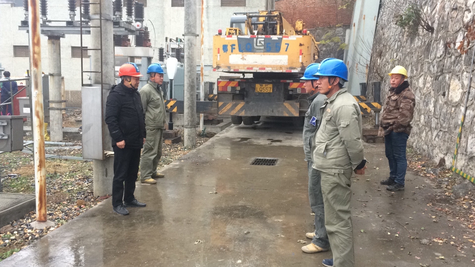 某藥廠變壓器增容改造現(xiàn)場,施工人員頂著寒風冒著冷雨召開班前會